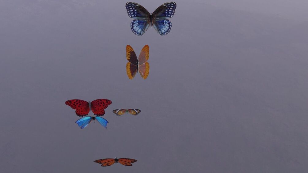 A 120 frame loop of 6 butterflies flying in a circle. Low poly to add some color to your project It's low poly and won't slow down any render Also, there is a transparent (PNG) video included to add to a video easily as an overlay